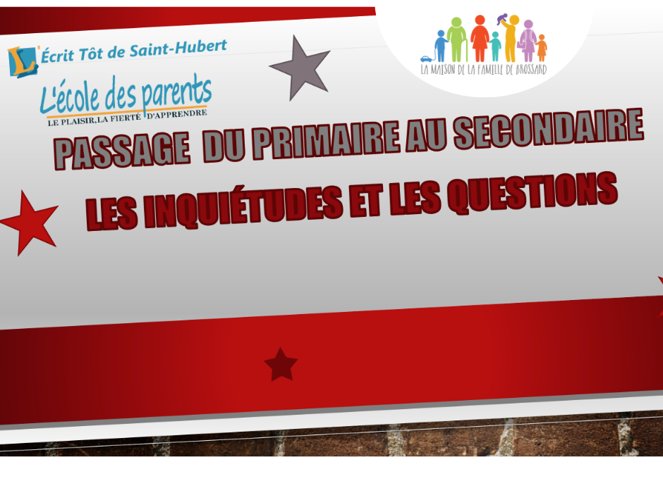 Conférence pour les parents le passage du primaire au secondaire «les inquiétudes et les questions»