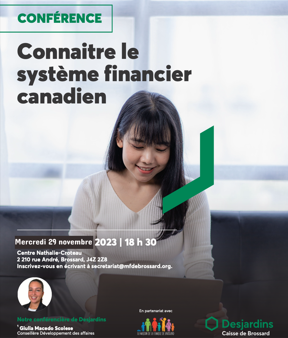 La conférence sera donnée par Giulia Macedo Scolese, Conseillère Développement des affaires de la Caisse Desjardins de Brossard