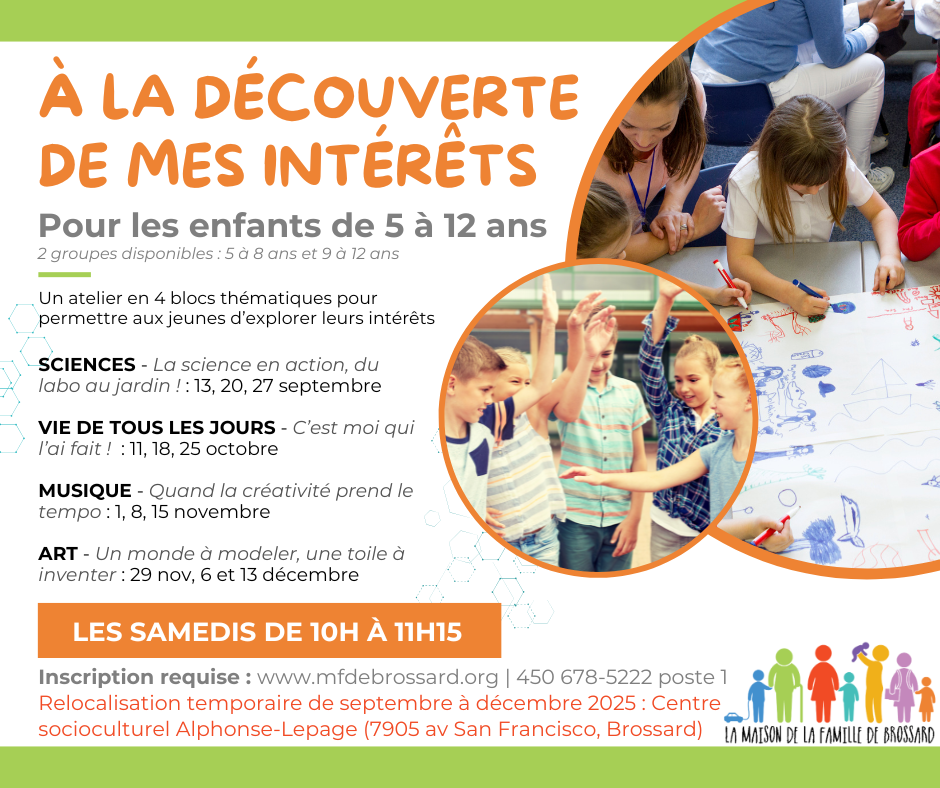 C.C. Nathalie Croteau 2210 rue André Brossard RELOCALISATION TEMPORAIRE de septembre à décembre 2025. Ces activités se tiendront au Centre socioculturel Alphonse-Lepage (7905 av San Francisco, Brossard)